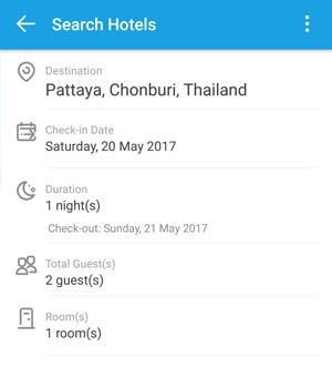 จากตัวอย่างผมเลือกพัทยาจุดหมายปลายทาง เลือกวันที่ จำนวนคืนที่เข้าพัก จำนวนแขก อันนี้ปรกติครับ