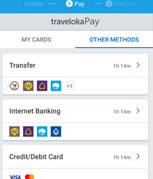 เราสามารถเลือกวิธีการชำระเงินที่ต้องการได้เลย จะเห็นว่ามีทางเลือกในการจ่ายนอกจากบัตรเครดิตได้ด้วย เป็นทางเลือกสำหรับคนไม่ชอบใช้บัตรครับ สำหรับคนที่วางแผนไปต่างประเทศล่วงหน้านานๆแล้วอยากมีฟีเจอร์ Free Cancellation ผมยังไม่เห็นฟีเจอร์นี้ใน Traveloka